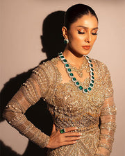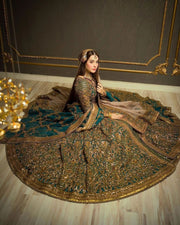 Minal Khan truly stole the spotlight in this breathtaking lame golden and mint green angharaka by Haris Shakeel, beautifully accentuated with rich red hues. The intricate detailing, graceful silhouette, and vibrant contrast of colors made this ensemble a true showstopper. Radiating elegance, tradition, and modern sophistication — she carried the look with absolute perfection, turning every head along the way