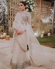 New Arrival, Exploring classic silhouettes, Kaia is a masterpiece. The off-white chiffon shirt and karandi gharara feature uniquely designed pearl and mirrorwork motifs for a truly majestic look. This set also includes an ornately adorned organza dupatta