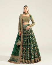 Draped in the enchanting allure of emerald green, this Mohsin Naveed Ranjha bridal is the epitome of regal charm and timeless tradition. Adorned with intricate gold embellishments and paired with a luxuriously flowing silhouette, it captures the essence of royalty in every detail. Perfect for the bride who wishes to make an unforgettable statement, this masterpiece blends heritage craftsmanship with modern elegance, ensuring all eyes remain on her as she steps into her fairytale moment.