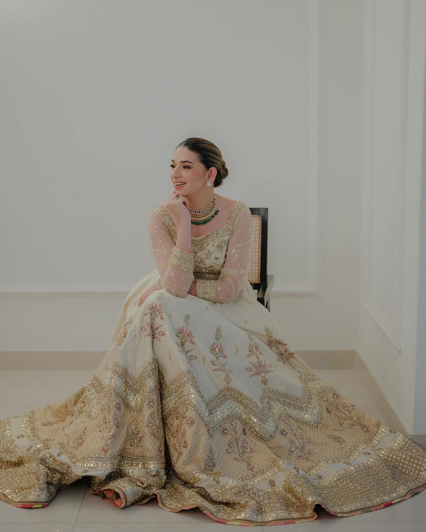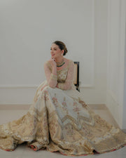 Saira Shakira - Maya Ali carries our astounding lehnga choli with remarkable grace. With its unique choli cut and extensive embellishments all over the top, bottom and the dupatta; this couture masterpiece is the Bridal dress of your dreams. This Bridal Walima Dress. A masterpiece that speaks volumes of timeless elegance. This exquisite ensemble features delicate craftsmanship, intricate hand embellishments, and refined detailing on soft, sophisticated hues. It’s a signature Saira Shakira creation graceful, luxurious, and made to captivate.