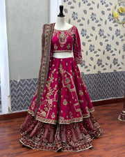 This exquisitely ornamented lehnga choli is the epitome of classic elegance.