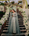 Richly crafted in traditional techniques, this mint green lehnga choli is the embodiment of utmost charm. Detailed in zardozi craftsmanship giving a glamorous look for bride, this ensembles with addawork on net dupatta to add the regality any bride is looking for!