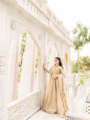 Presenting a regal creation by Rimple & Harpreet, a vision of elegance perfect for heavy formals and Nikkah ceremonies. Drenched in tradition and adorned with intricate hand embellishments, rich textures, and signature detailing, this ensemble redefines timeless sophistication. From its graceful silhouette to the delicately finished dupatta, every element speaks of heritage and understated luxury