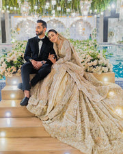 This breathtaking Honey Waqar creation is the true definition of luxury and timeless elegance. Adorned with intricate handwork, delicate embellishments, and a flawless silhouette, it radiates sophistication from every angle. Perfect for the bride who wants to look regal yet graceful, this masterpiece blends tradition with modern charm, making it a dream outfit for your big day.